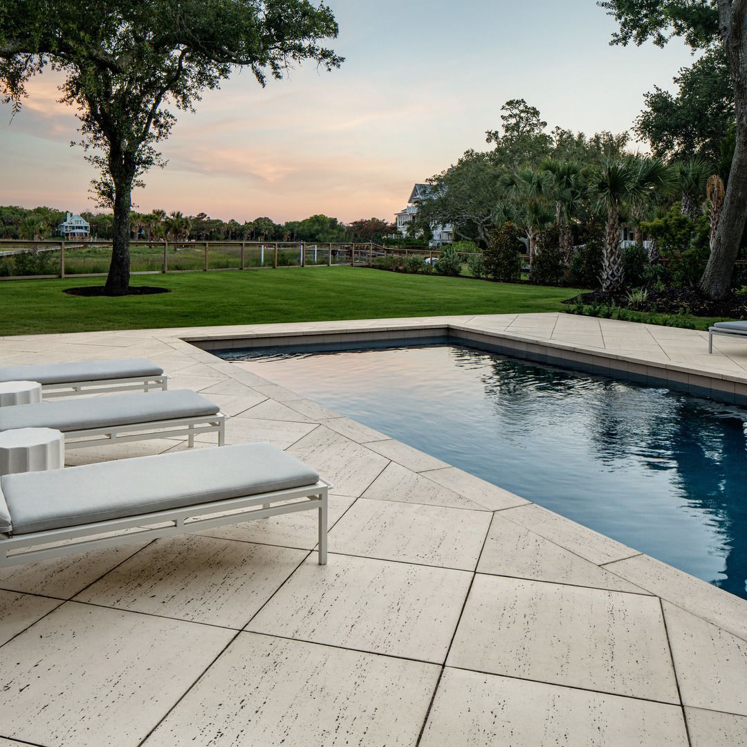 Building a resort-style backyard? Travertina Raw by @techo-bloc is your go-to for poolside installs.