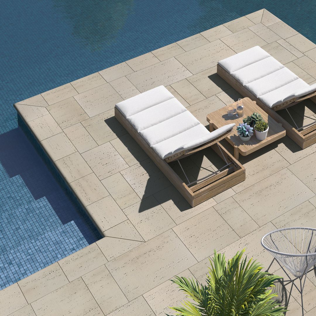 โ˜€๏ธThe travertine look clients loveโ€”without the maintenance